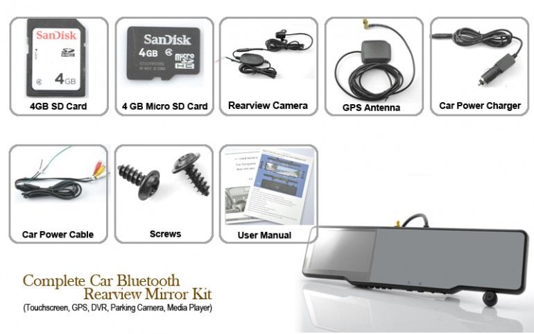 Esta brilhante ideia tinha que vir da China, do pessoal da Chinavasion, que criou este kit de substituição do espelho retrovisor com este kit com GPS, Bluetooth 2.1 e um ecrã touchscreen de 4.3 polegadas para ver filmes, gravar o que se passa dentro e fora do carro e jogar jogos via o touchscreen!