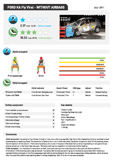 A maioria não tinha airbags e o teste de imapcto frontal a 64 km/h demonstrou que a maioria tinha uma rigidez estrutural muito fraca. Para terem uma ideia, só em 2014 é que a Argentina e o Brasil vão tornar obrigatório os airbags para os condutores.Visto em DetroitNews