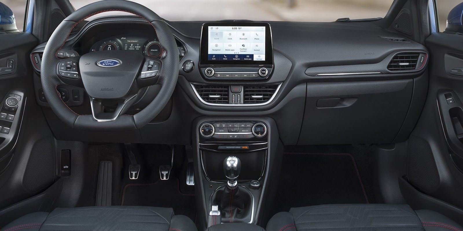 No interior temos o tablier do Fiesta e dependendo da versão poder receber um conjunto de instrumentos do condutor digital com um ecrã de 12,3 polegadas, tecto de abrir de vidro, sistemas audio B&O com 10 colunas, assentos com massagem à frente e com o modem 4G FordPass Connect poderá ter acesso aos serviços em linha do sistema SYNC3 e hotspot Wi-Fi.