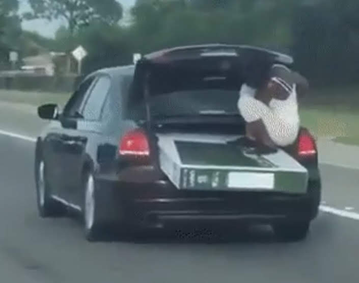Desculpem lá, mas isto não é seguro! Não é uma forma segura de transportar uma televisão - e se cair com o carro em movimento?! Lá se vai o investimento e não se consegue ver o Grande Prémio no fim de semana...